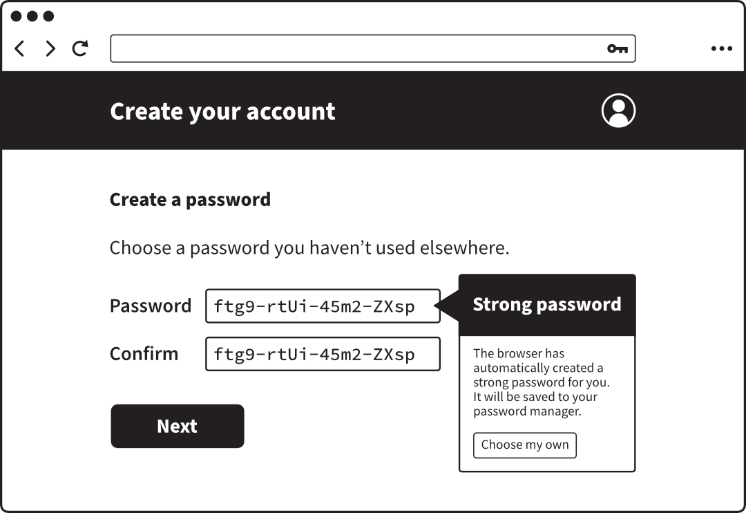 A password manager offering an automatically-generated password