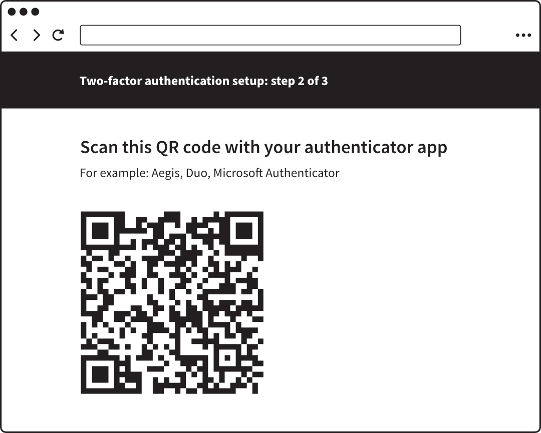 - Choose the option to use an app, and the website will show a QR code. In