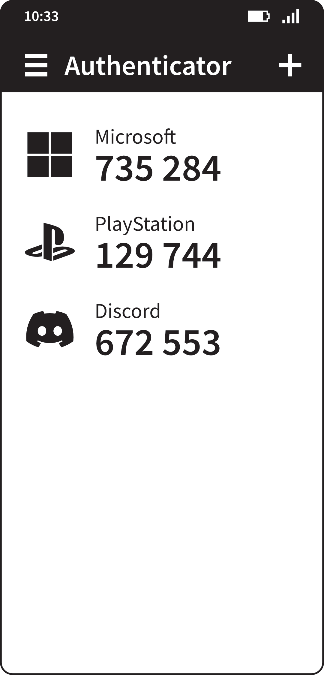 Authenticator app with three accounts configured