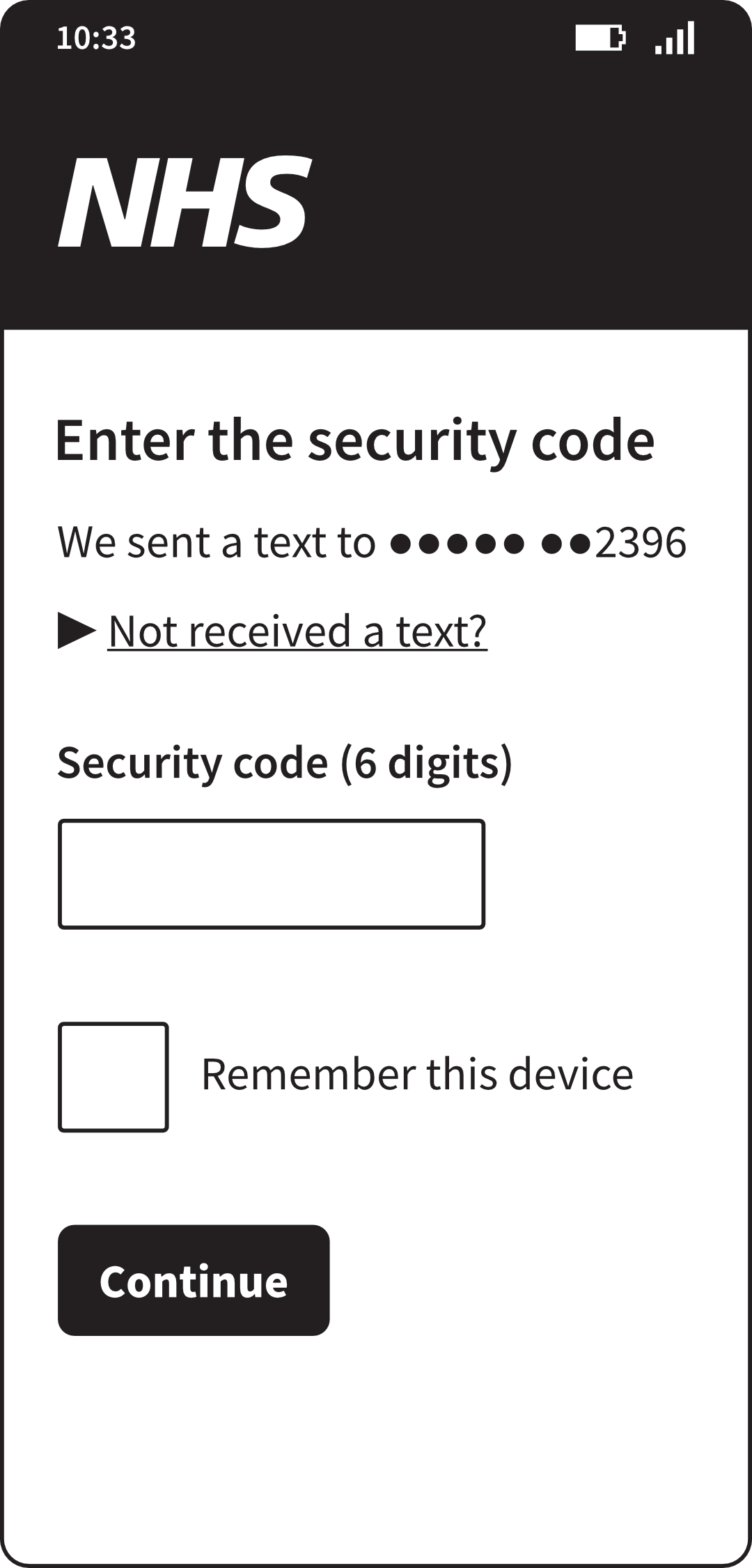 - A short numeric code appears on your phone, and the website (on your